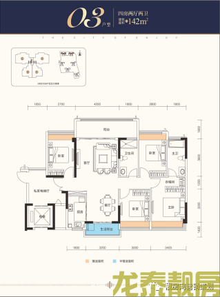 主力户型为103平-143平3居。